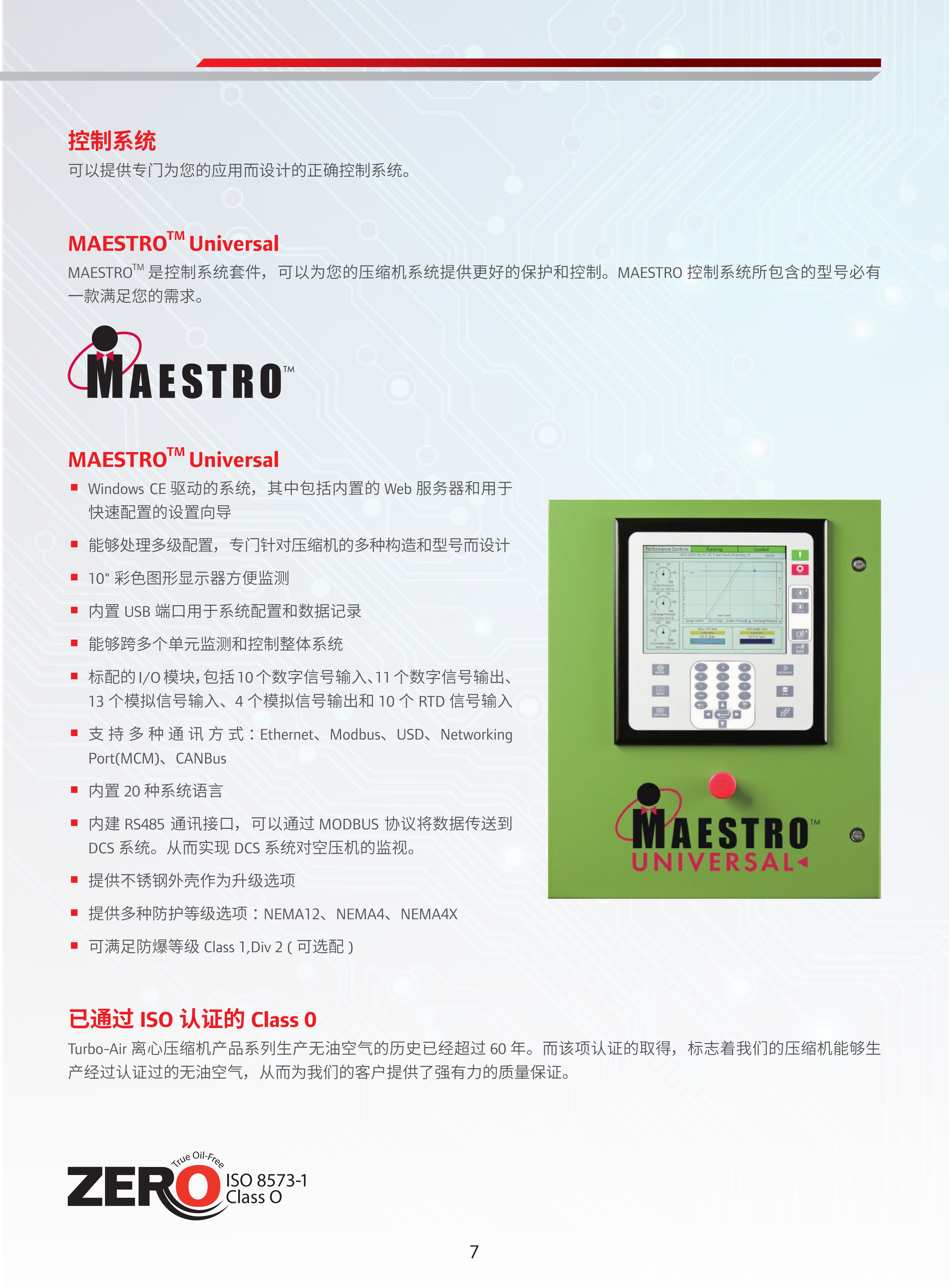 为压缩机定制的Maestro™ Universal控制系统是核心配套,功能强大且适配各类工况: