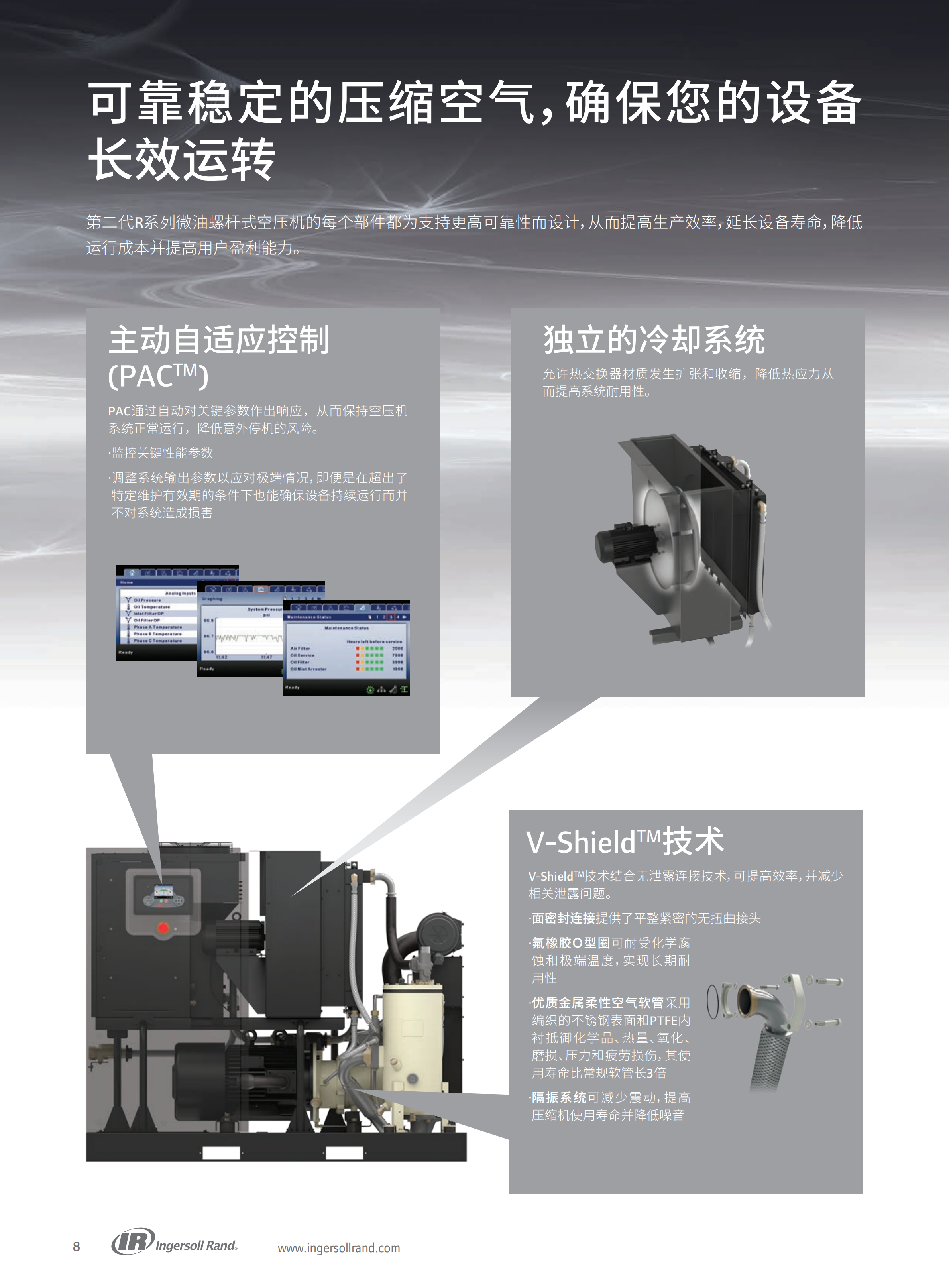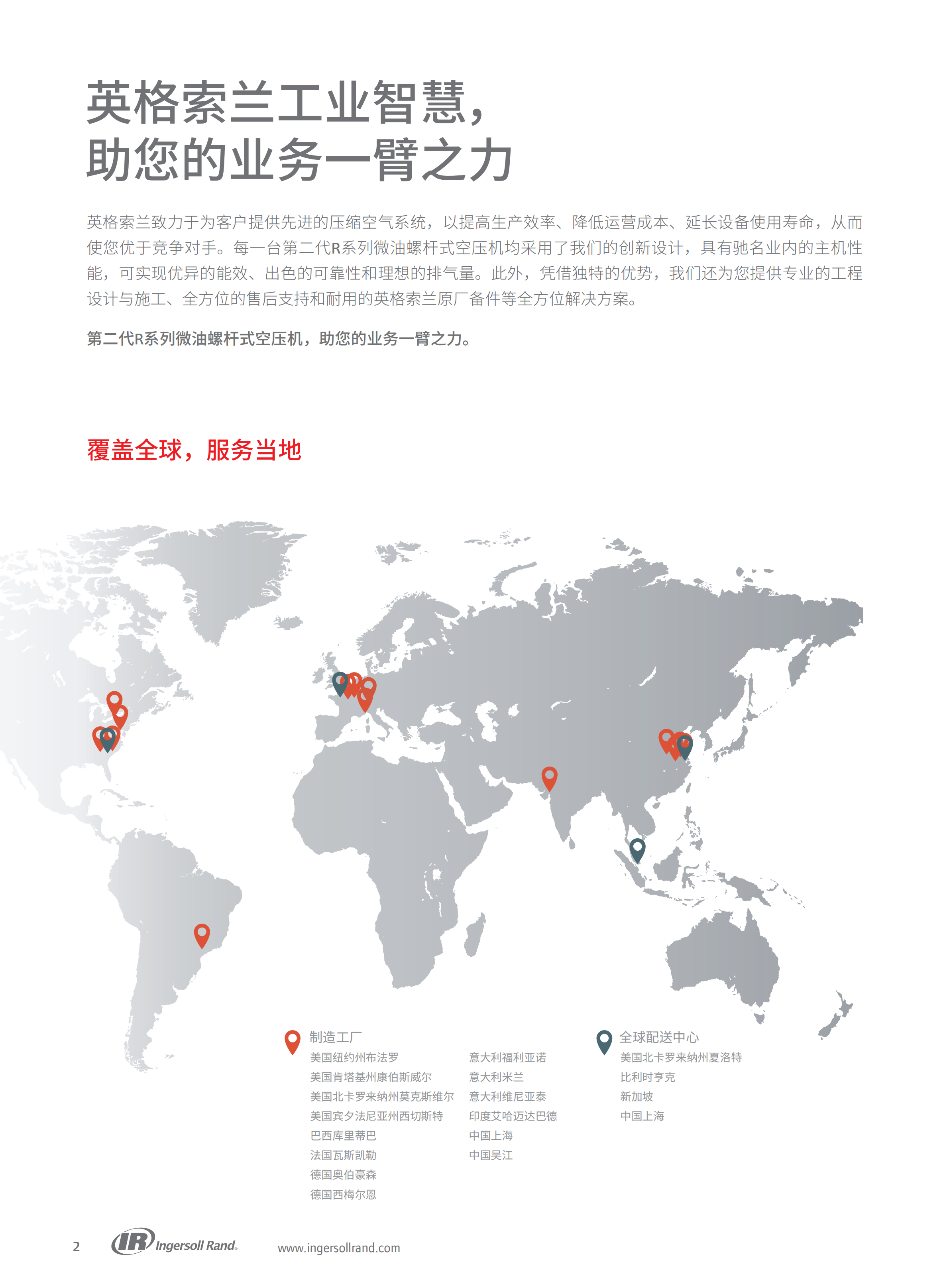 英格索兰第二代R系列30-37kW(40-50hp)微油螺杆式空压机依托创新设计与核心技术升级,实现了能效、排气量、可靠性的多重提升,搭配智能化控制系统与全方位的配套服务,可有效降低用户运营成本、提升生产效率,同时具备多工况适配能力,覆盖工业生产各类压缩空气需求。