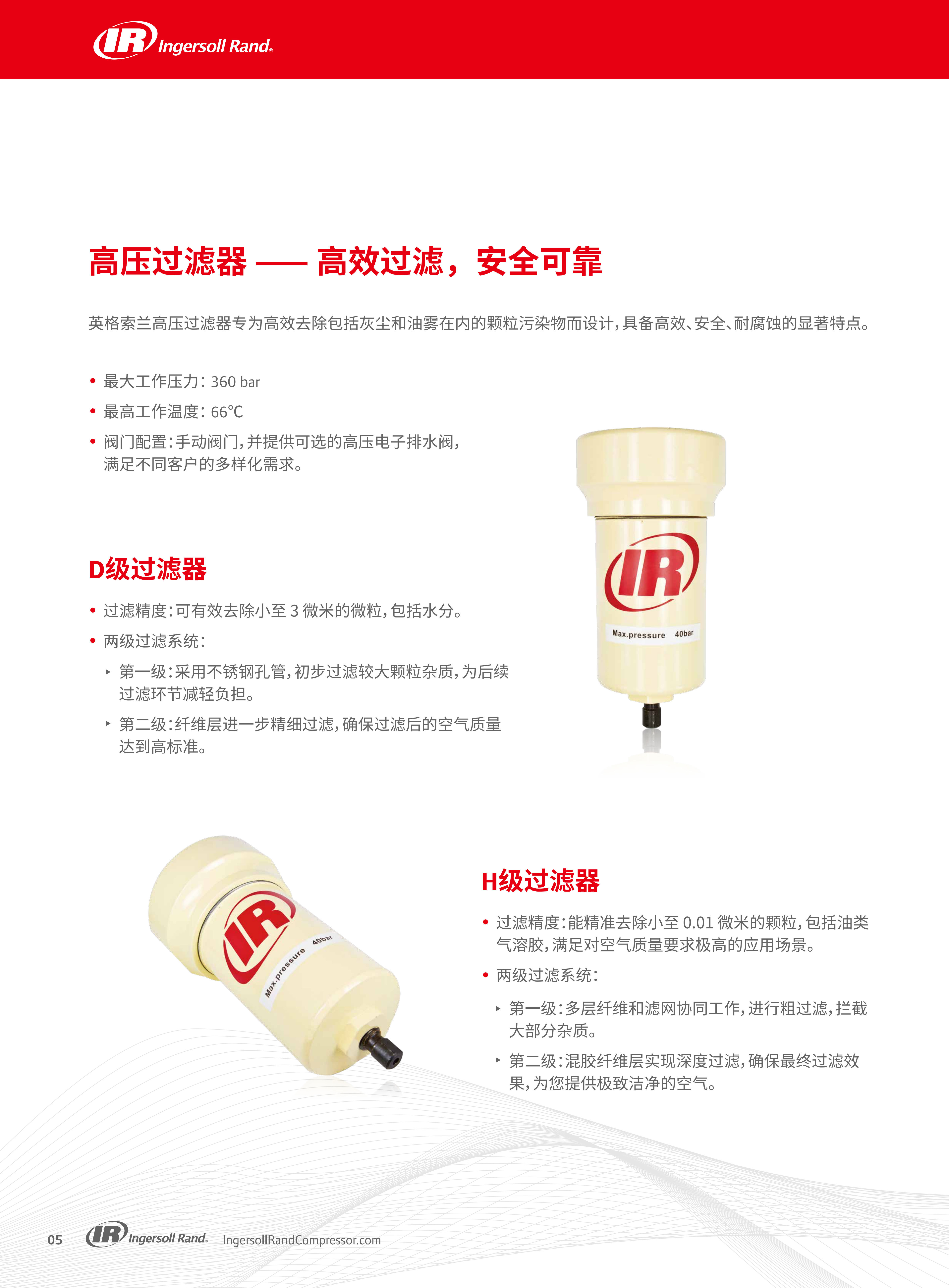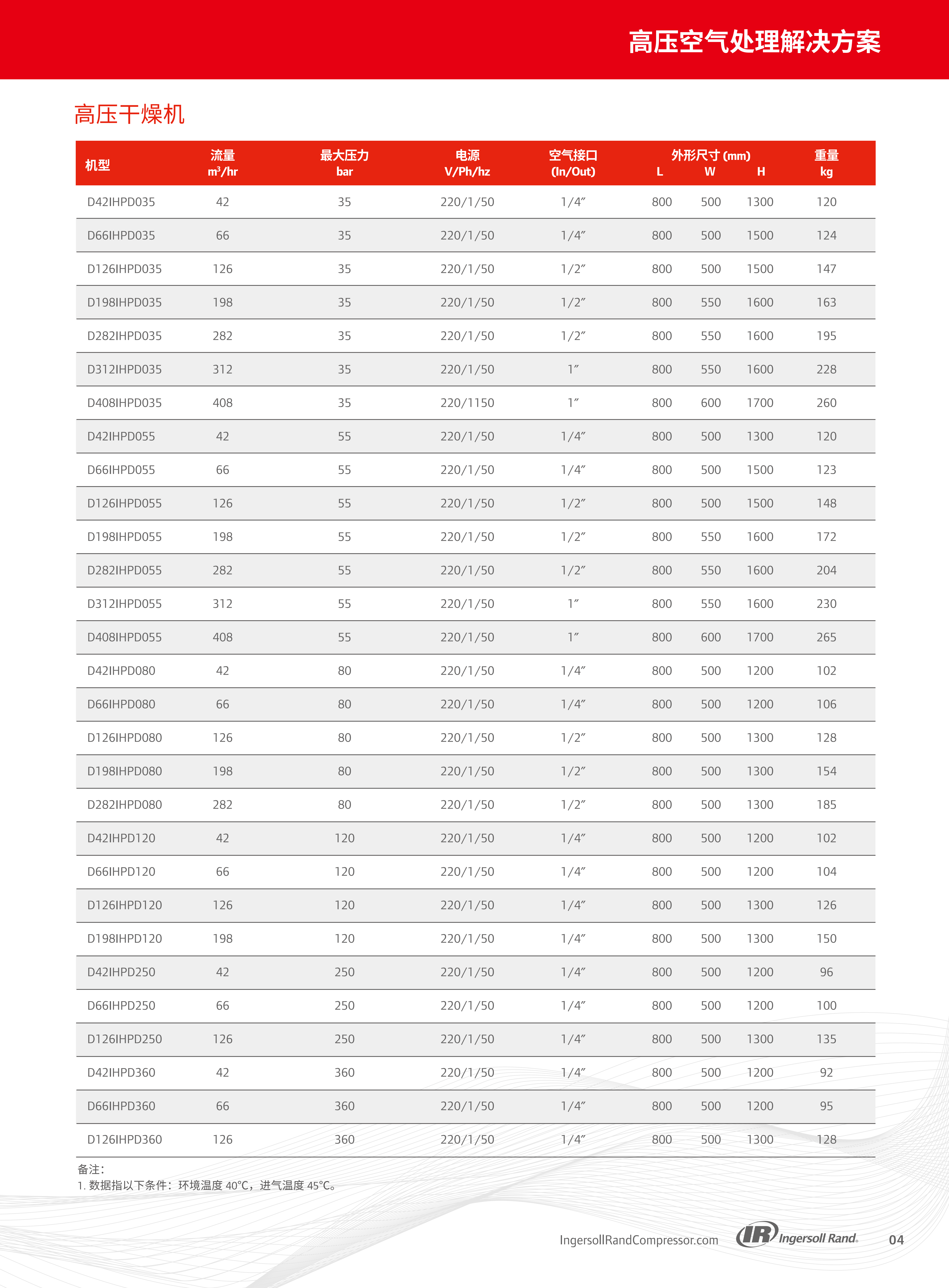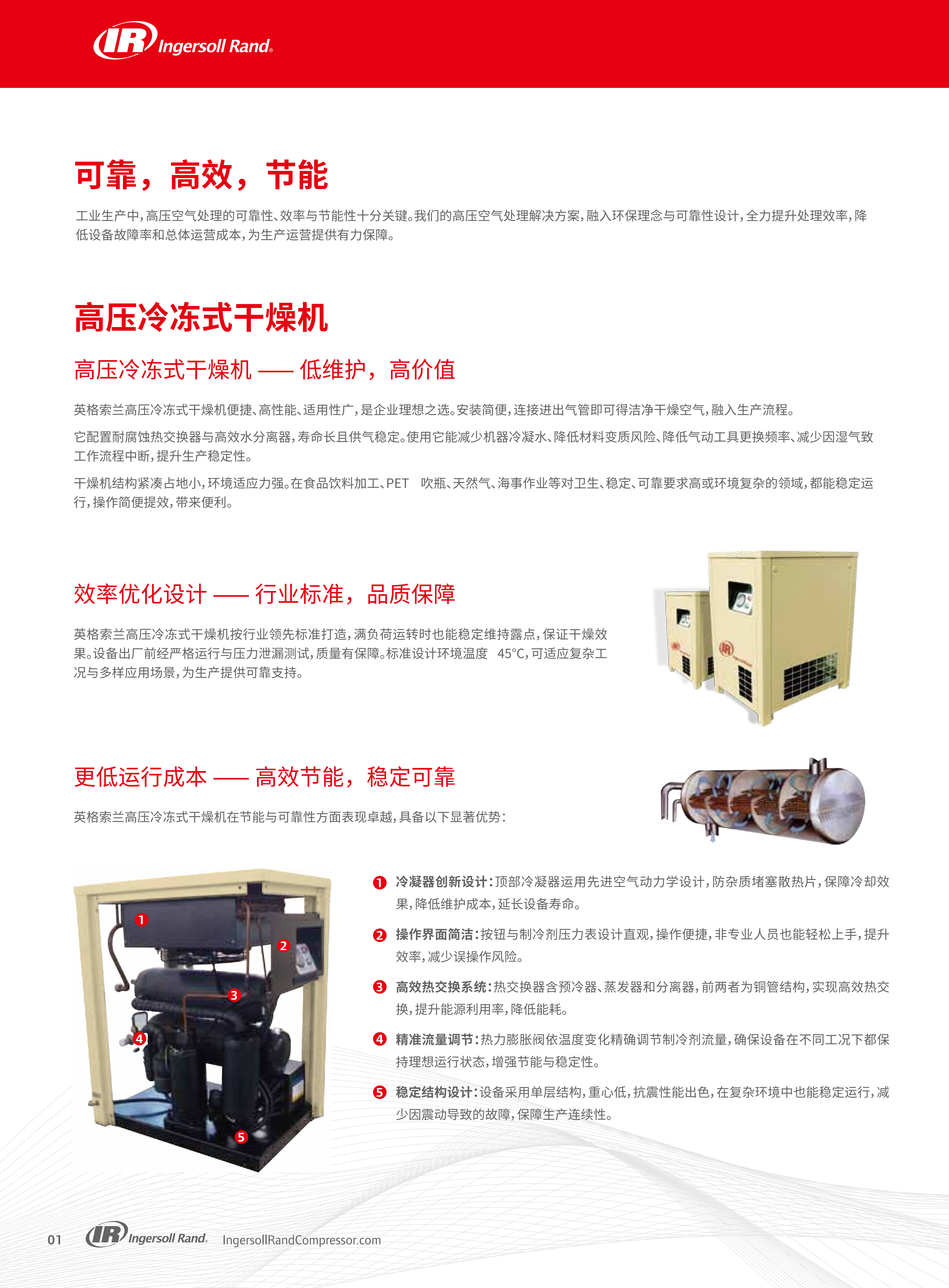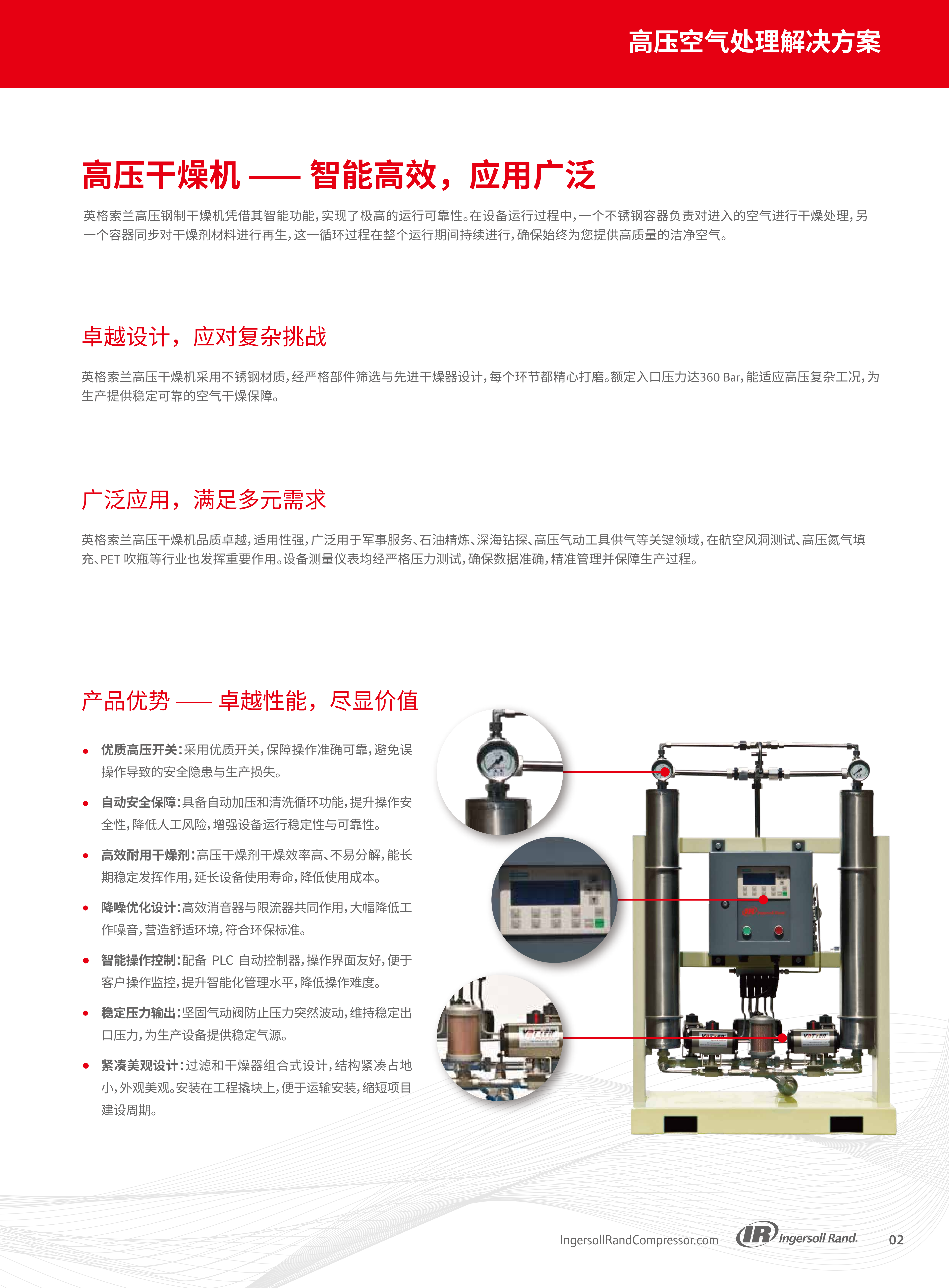 本英格索兰高压空气处理解决方案介绍,核心围绕可靠、高效、节能打造全系列高压空气处理设备,涵盖冷冻式干燥机、钢制高压干燥机、高压过滤器三大核心产品,配套完整参数与应用场景,同时介绍品牌服务与核心优势,为工业高压空气处理提供一体化解决方案。