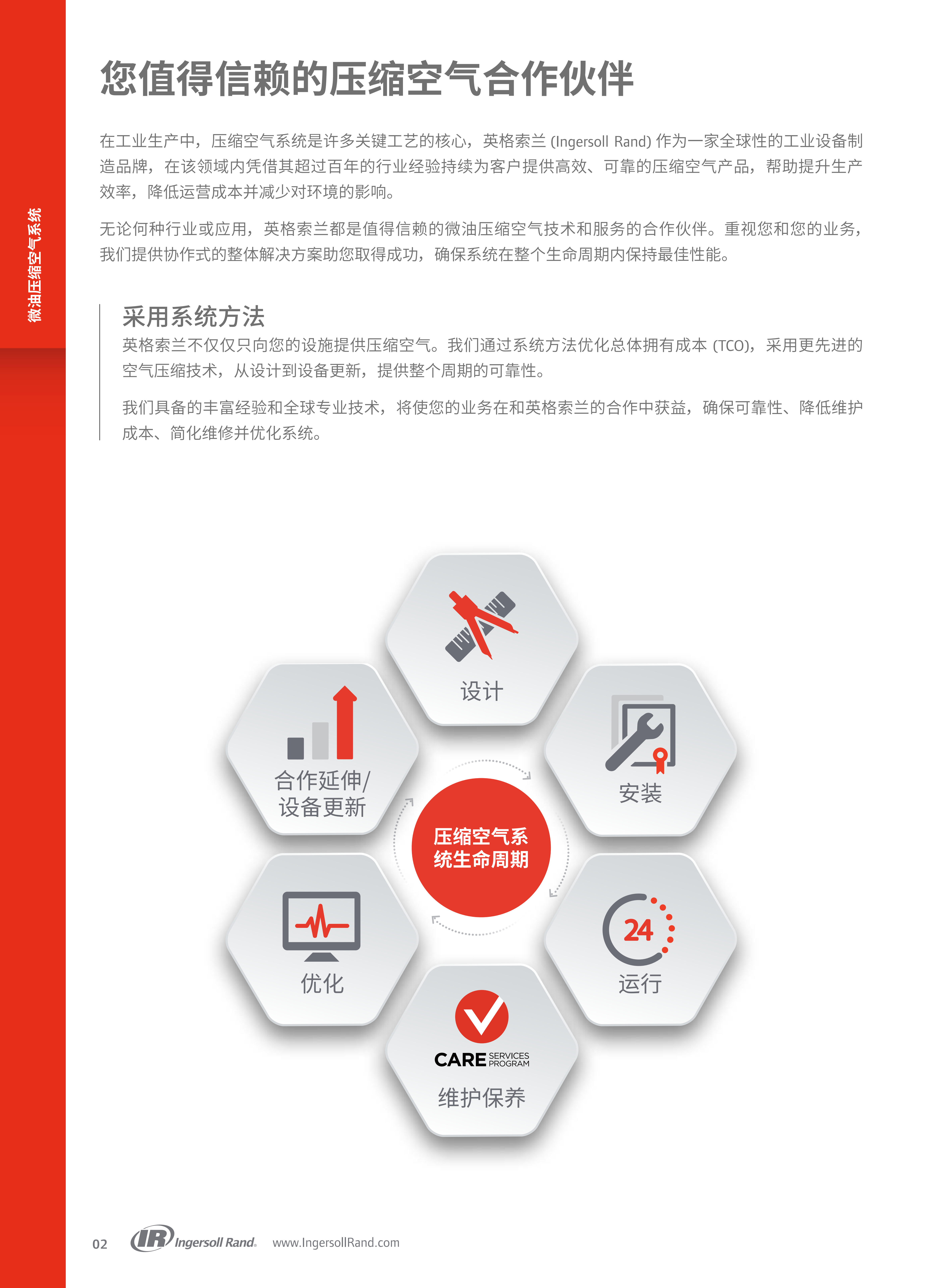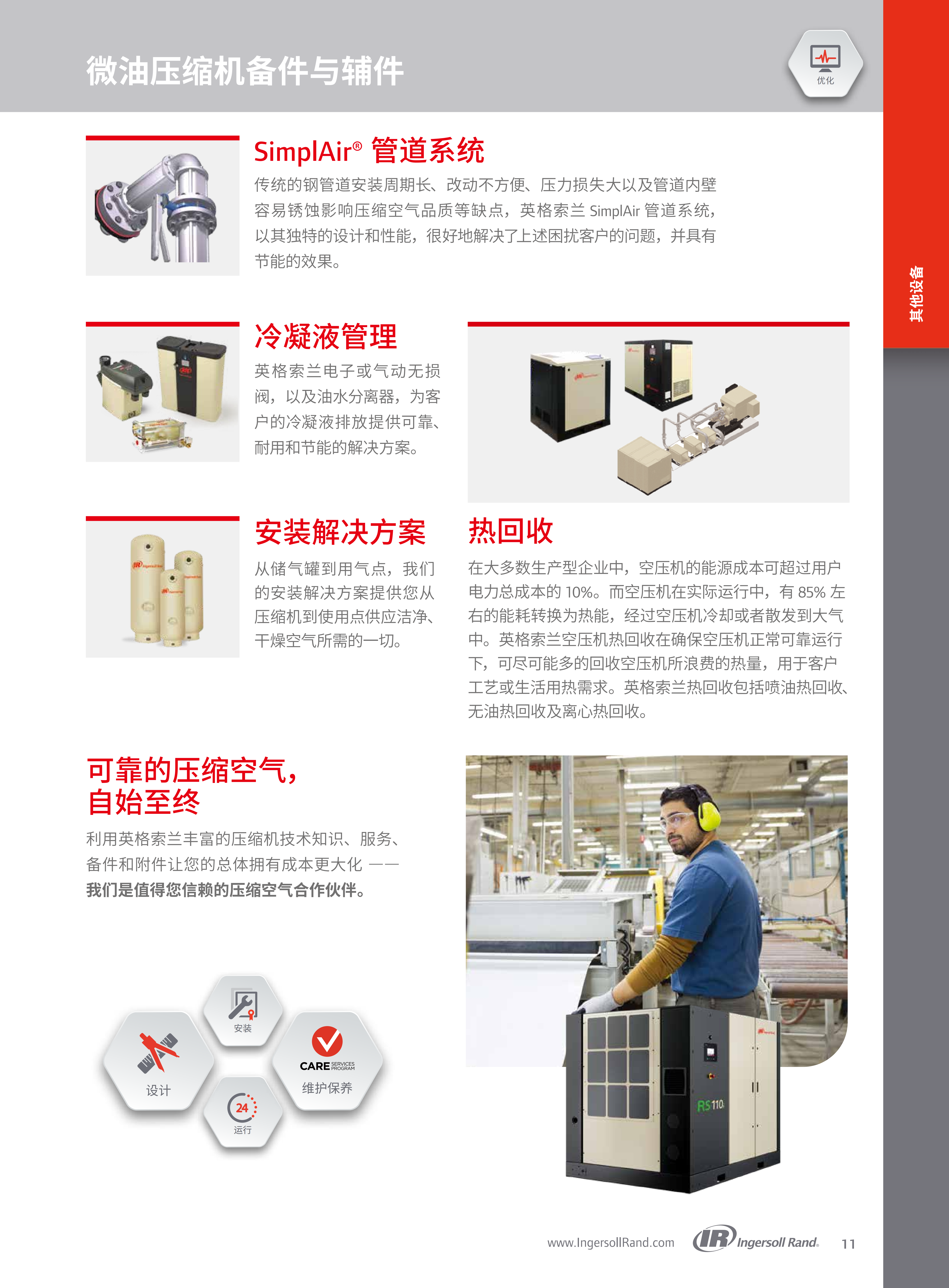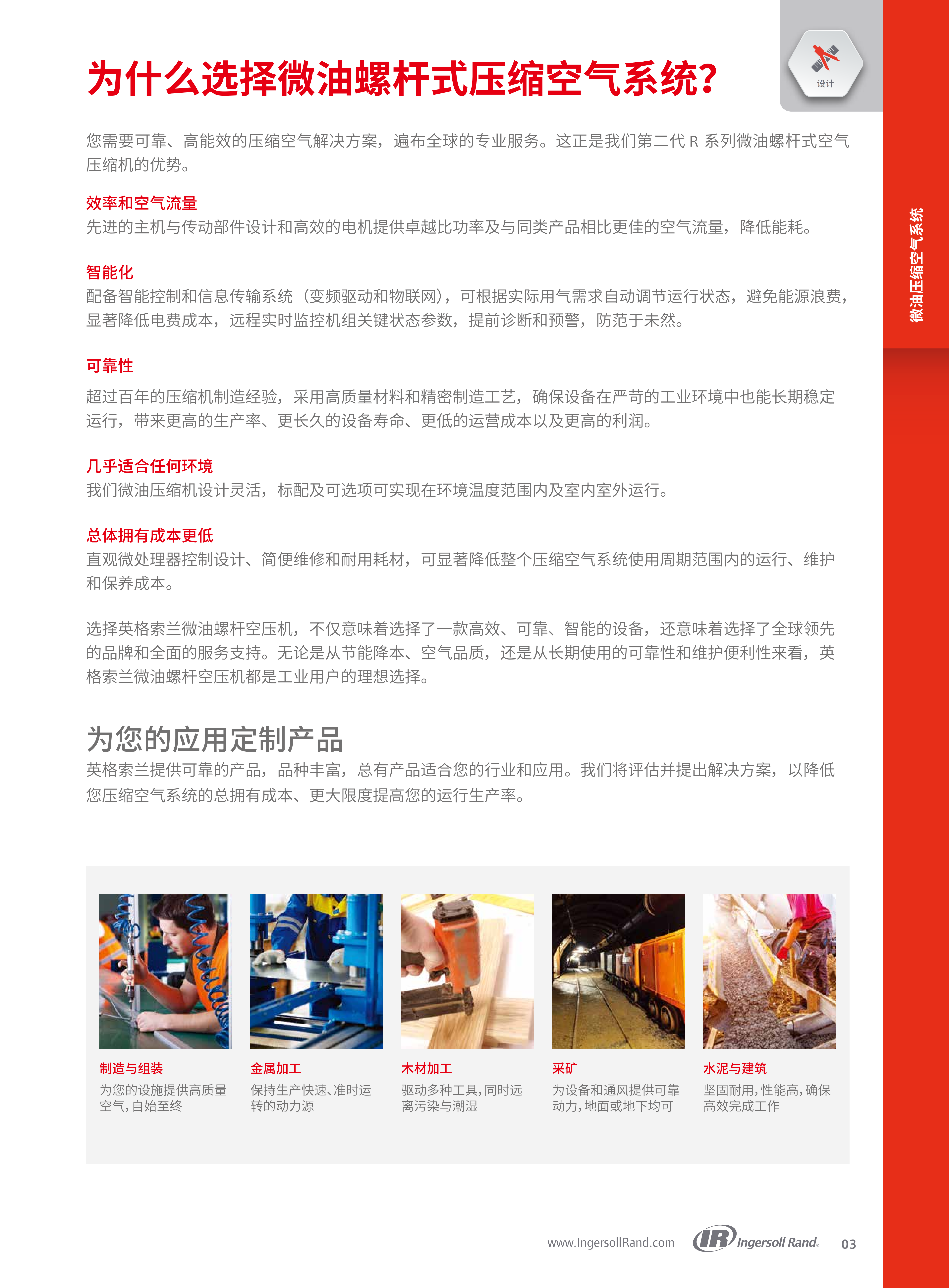 英格索兰第二代R系列90-160kW(125-200hp)微油螺杆式空压机的产品介绍,核心围绕产品技术优势、性能参数、配套设备、全生命周期服务及行业应用展开,凸显其高效、智能、可靠的核心特点,以及为工业用户降低总体拥有成本(TCO)的核心价值。