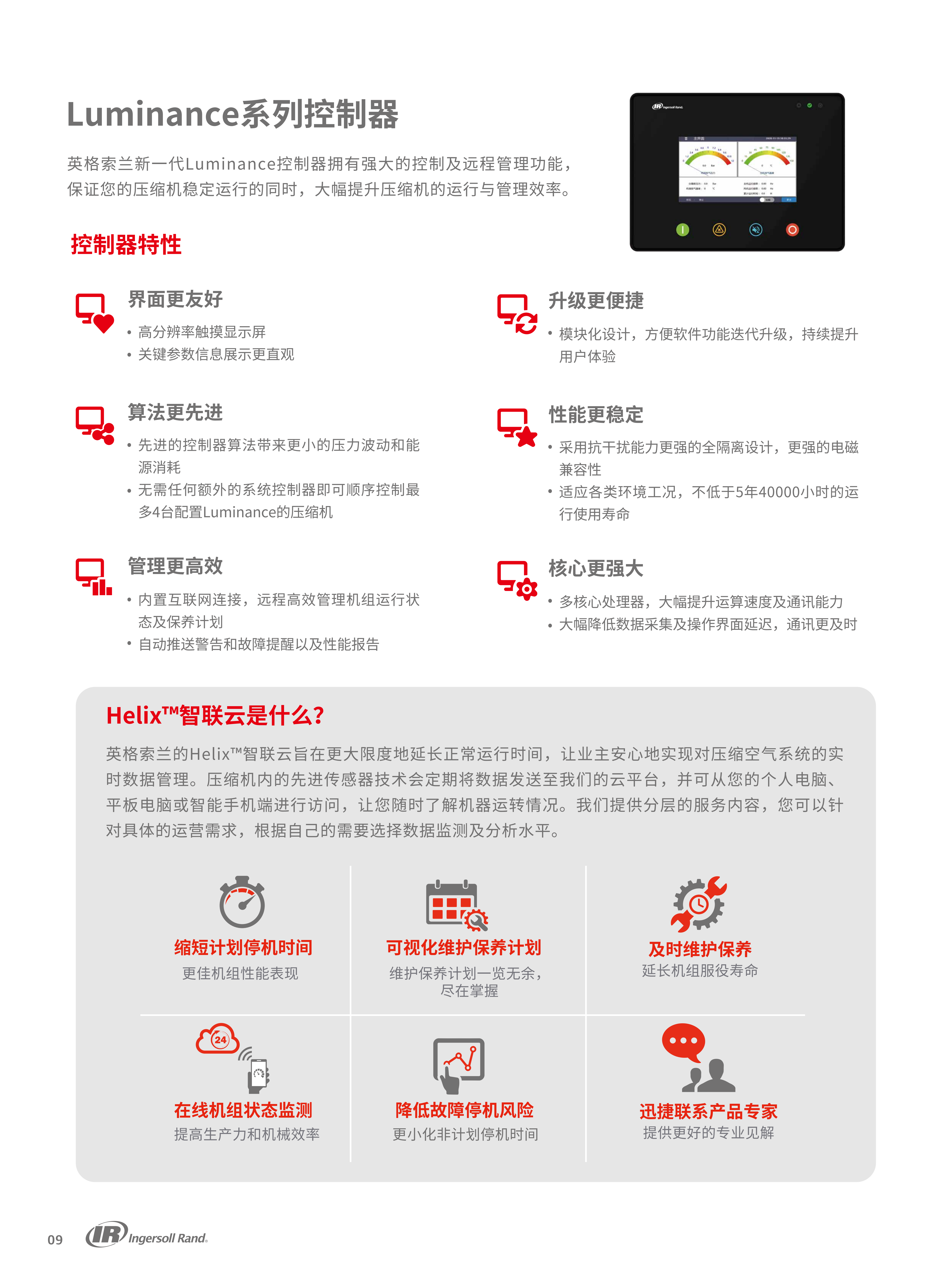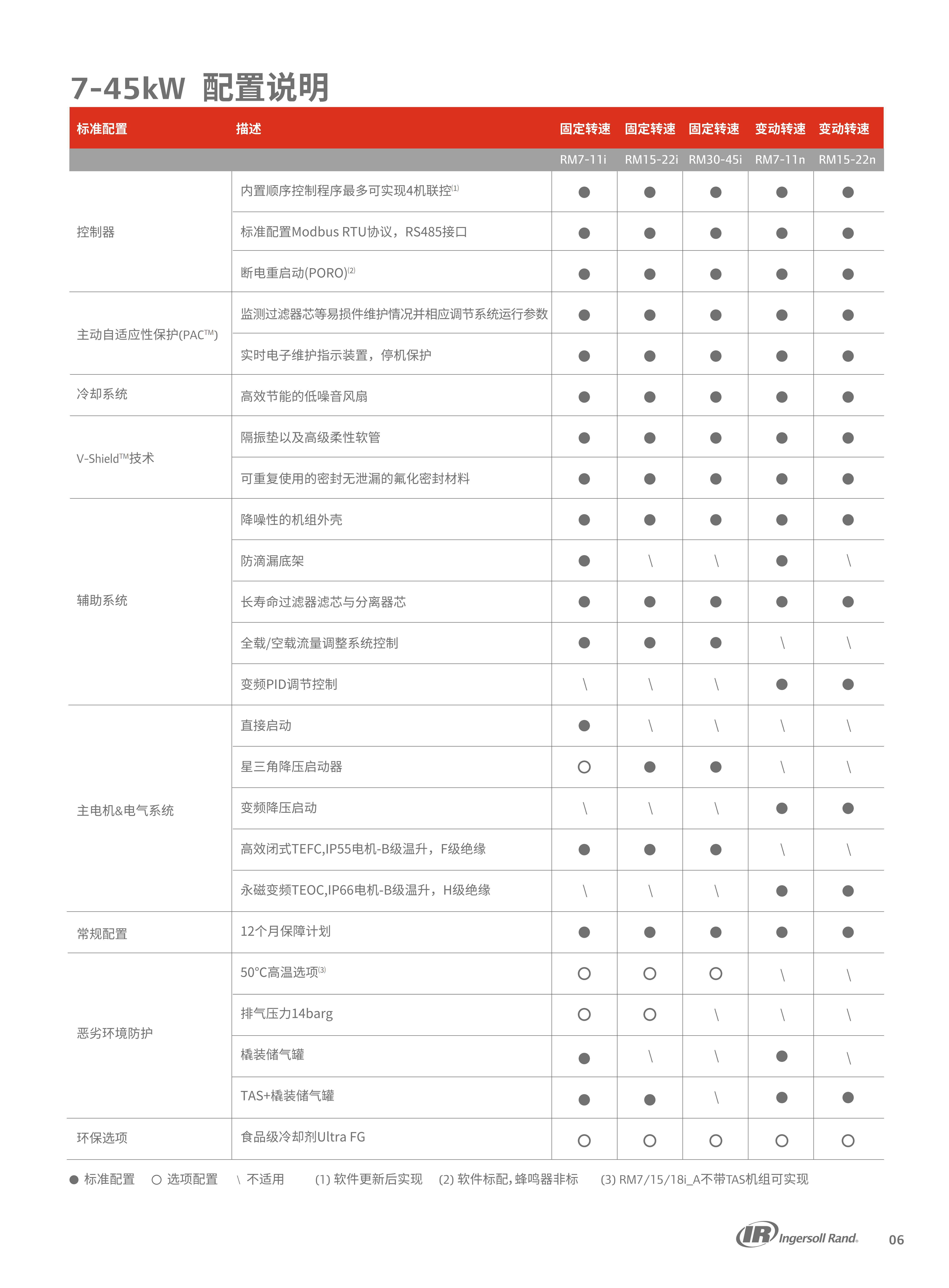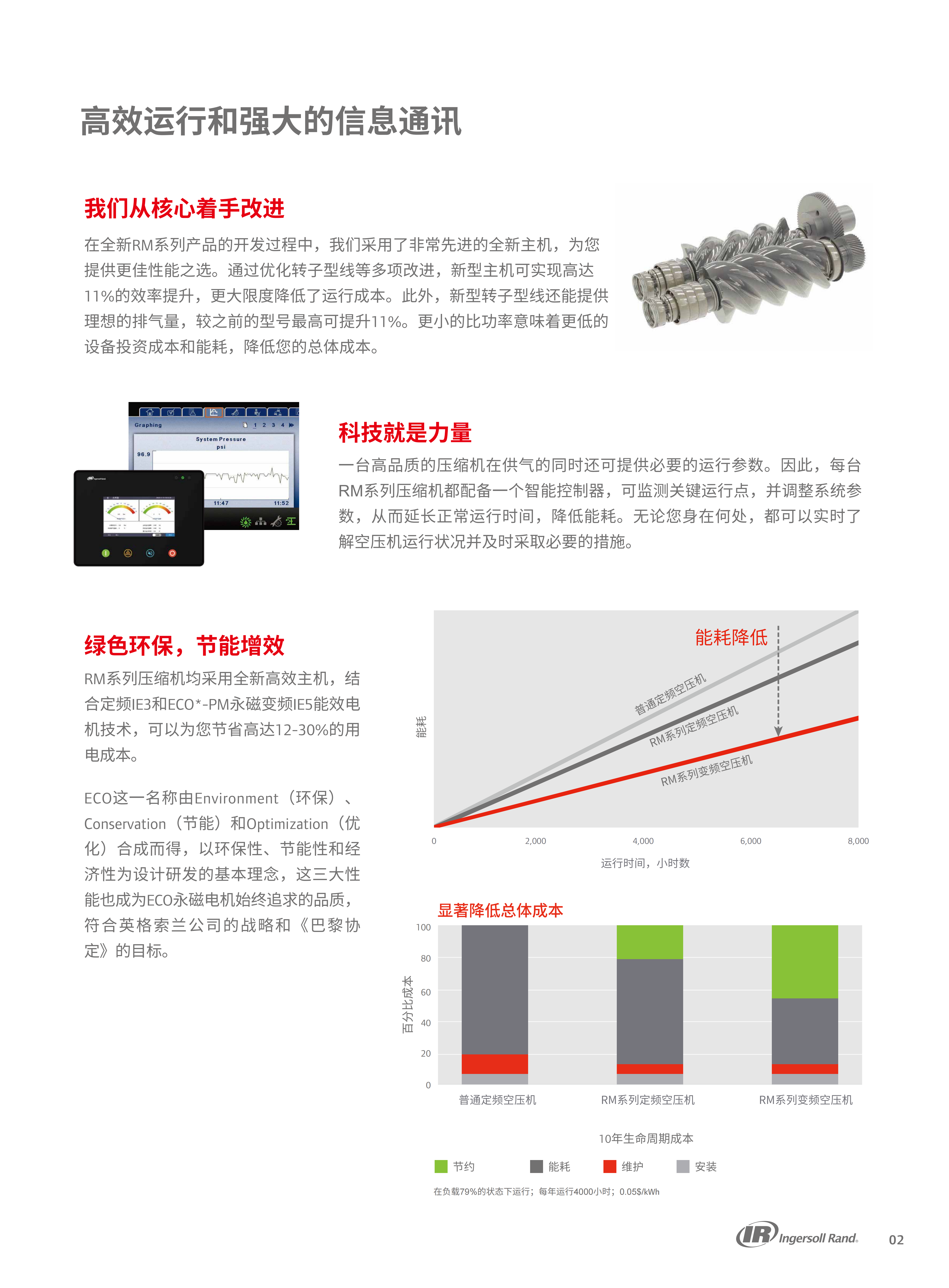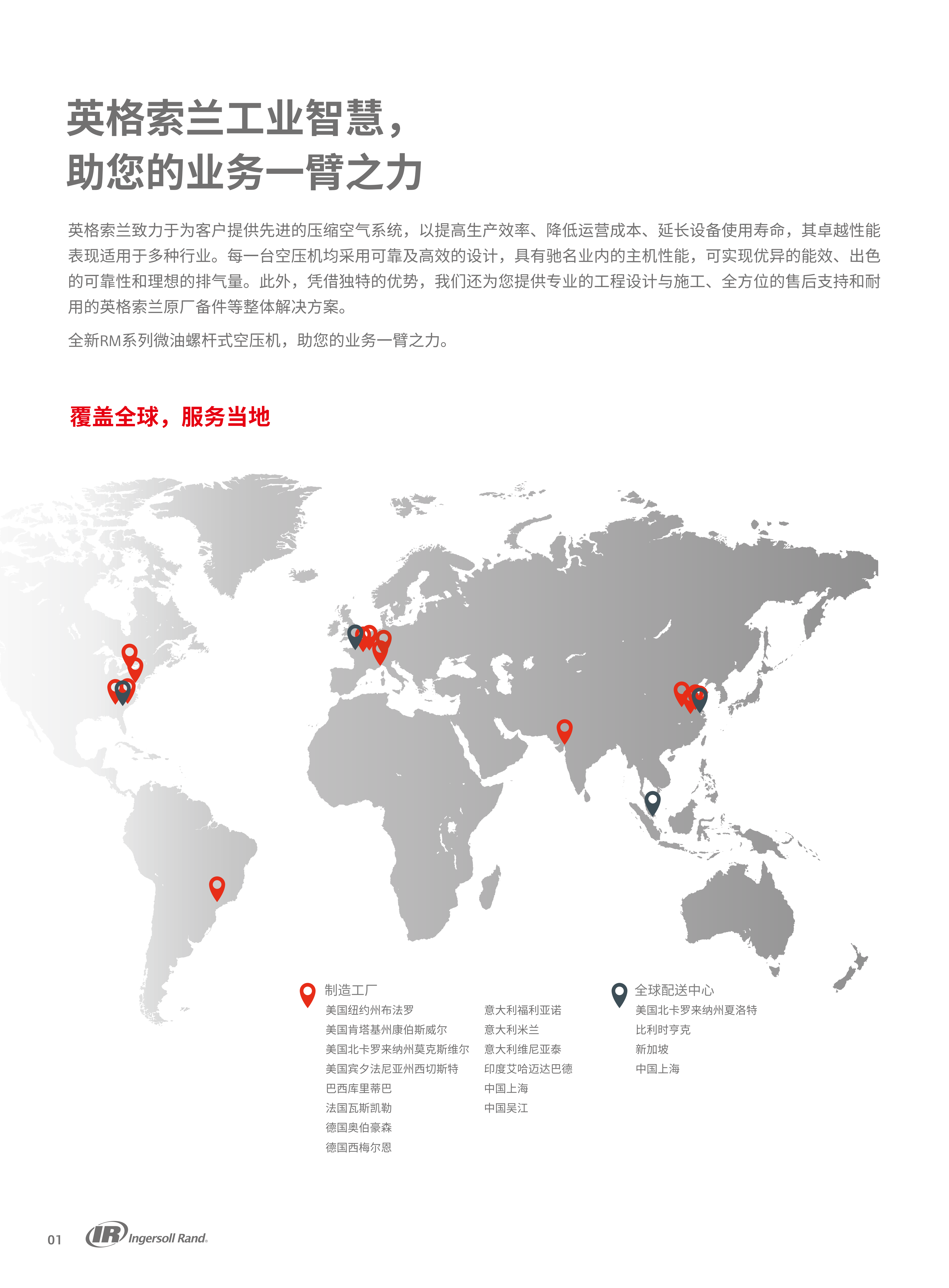 英格索兰全新RM系列7-45kW微油螺杆式空压机产品介绍,核心围绕产品技术优势、性能参数、配套设备、智能控制系统及售后服务展开,展现该系列空压机高效、节能、智能、可靠的特点,同时提供压缩空气系统整体解决方案,适用于多行业用气需求。
