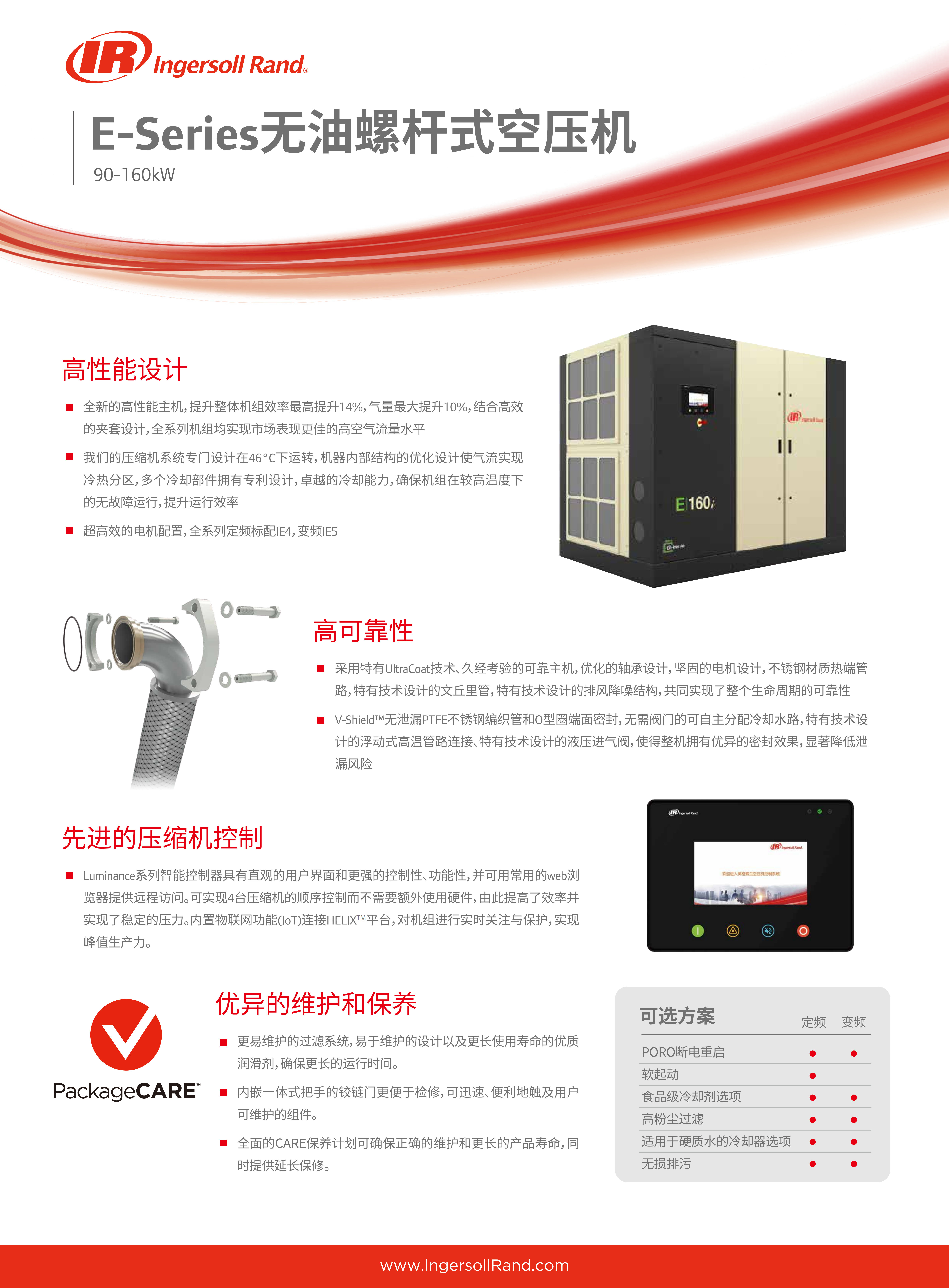 英格索兰91E-Series 90-160kW无油螺杆式空压机产品总结