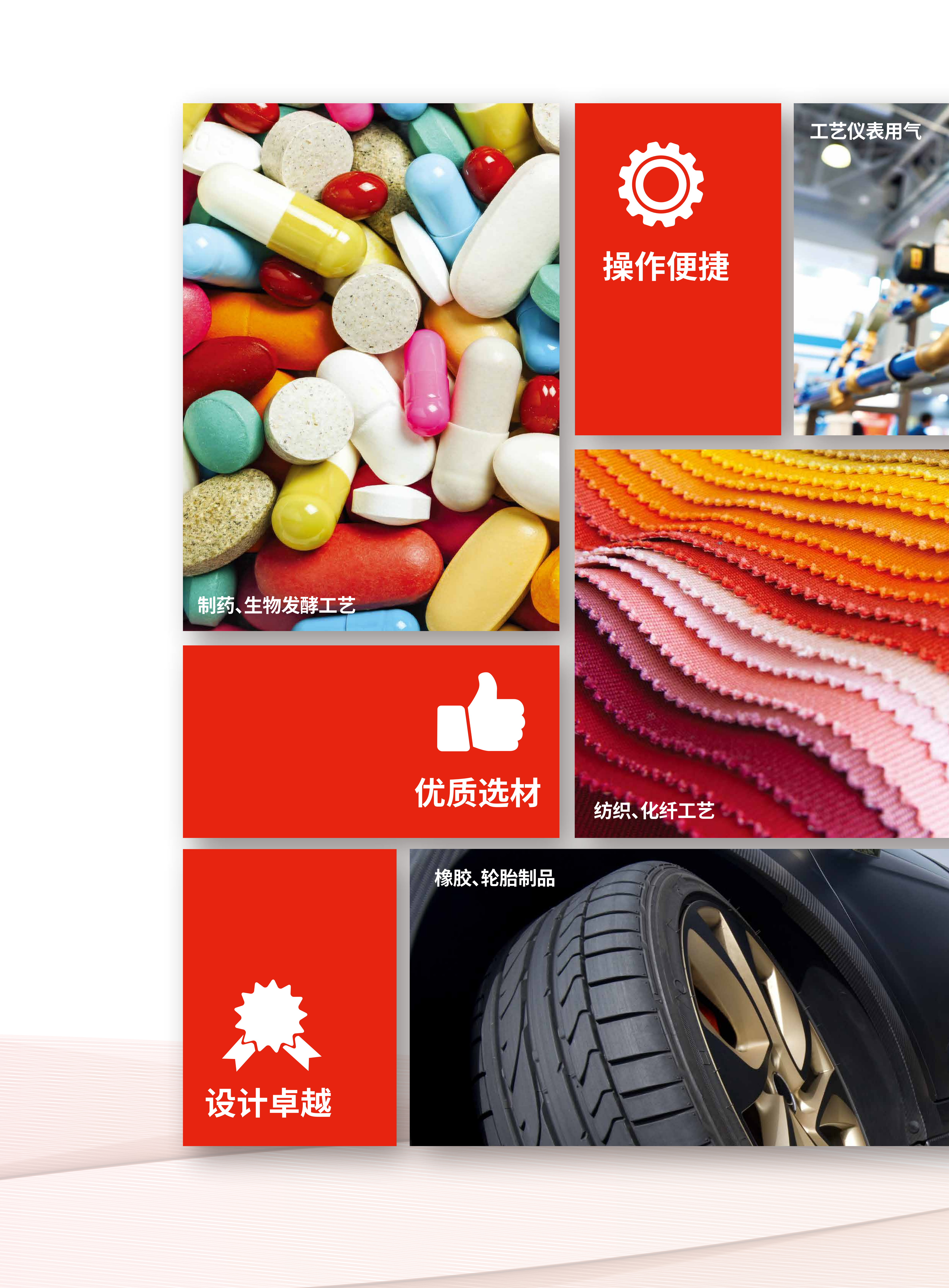 制药、生物发酵工艺;工艺仪表用气;纺织、化纤工艺;橡胶、轮胎制品生产;食品、饮料、烟草生产。